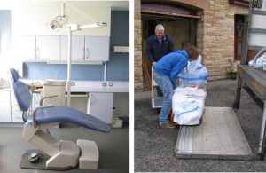 Along with the new boat will go boxes of goods for Livingstonia, Mlowe and the lakeside communities AND a donated dental suite including chair and ancilliary equipment. The dental equipment will be fitted in the new dental facility at Ekwendeni. John, more used to handling ships engines, generators etc., has been to collect the equipment and has agreed to store it in his garage until the container is ready to load. Thanks again, John.