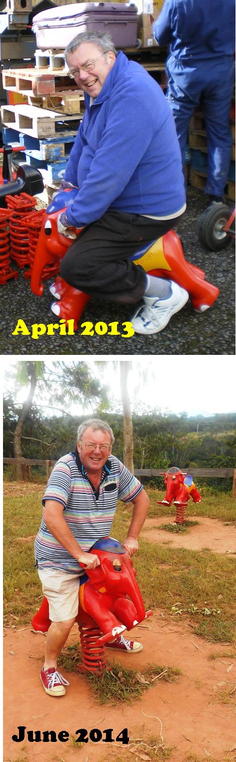 On loading day Trustee Alan Laverock undertook to test some of the equipment – namely an orange elephant! The whole lot, including swings, see-saws and slides were loaded into the container.